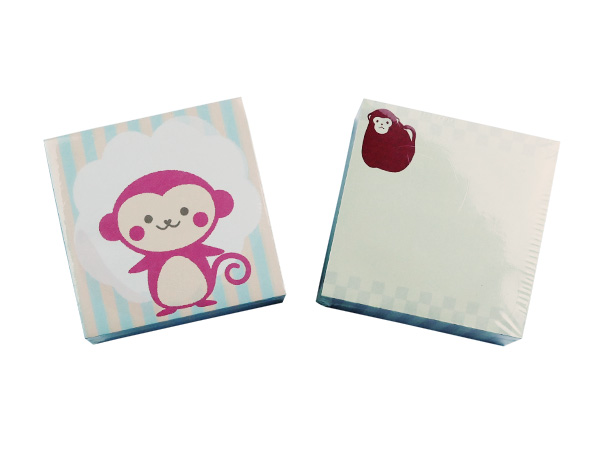 申年のお年賀としてお取引先様に配らせていただいた申のイラストが描かれた正方形メモです。ちょっとした電話応対や伝言を伝える際に使える便利なメモです。